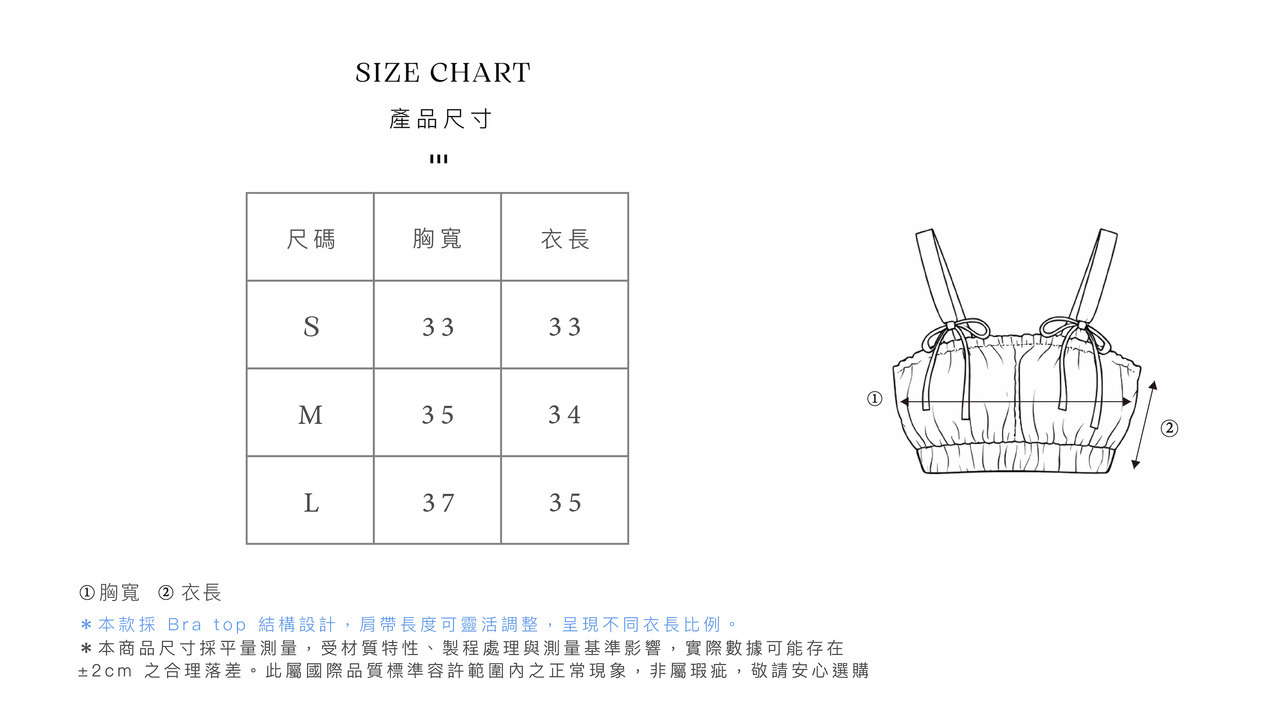 ◍ 調整式細肩帶剪裁,因應不同肩線長度,增添調整空間