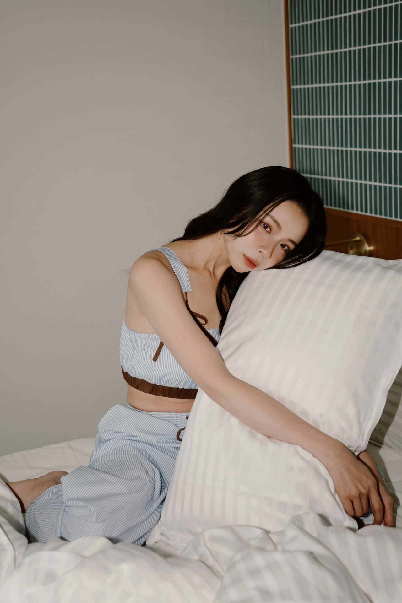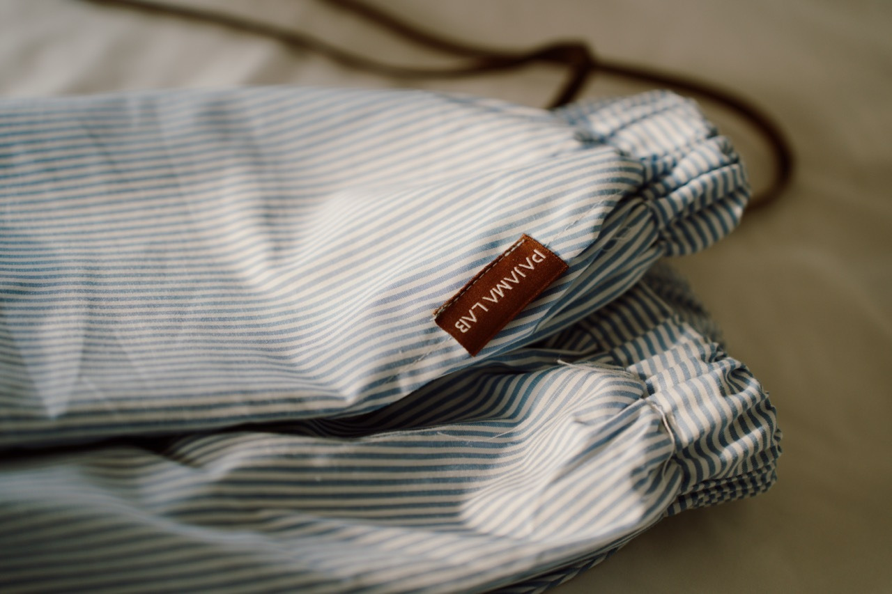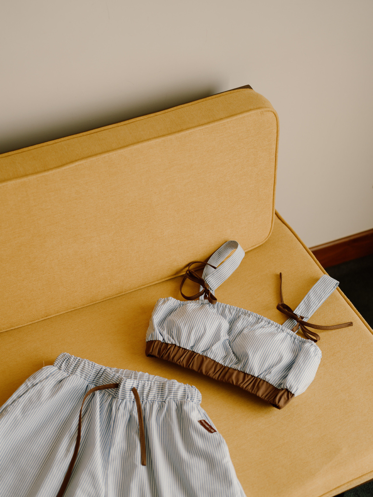 ◍ 藍白細條紋 × 咖啡色細節,復古且耐看